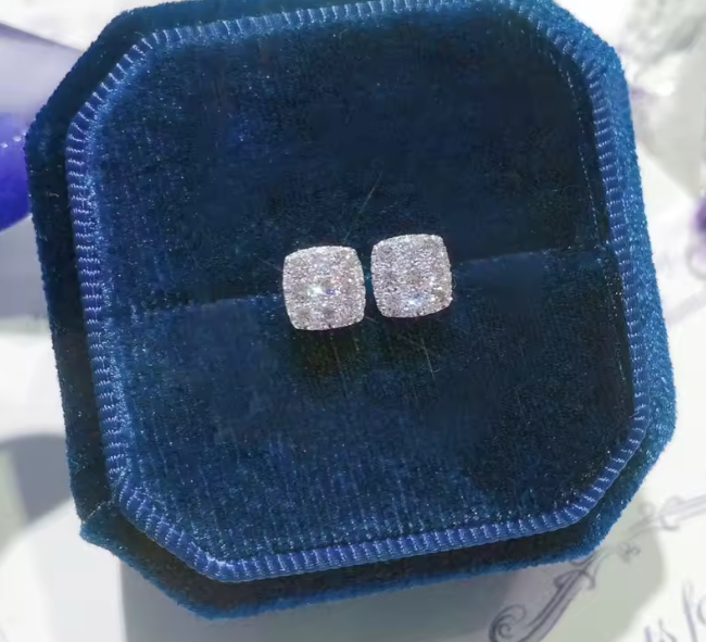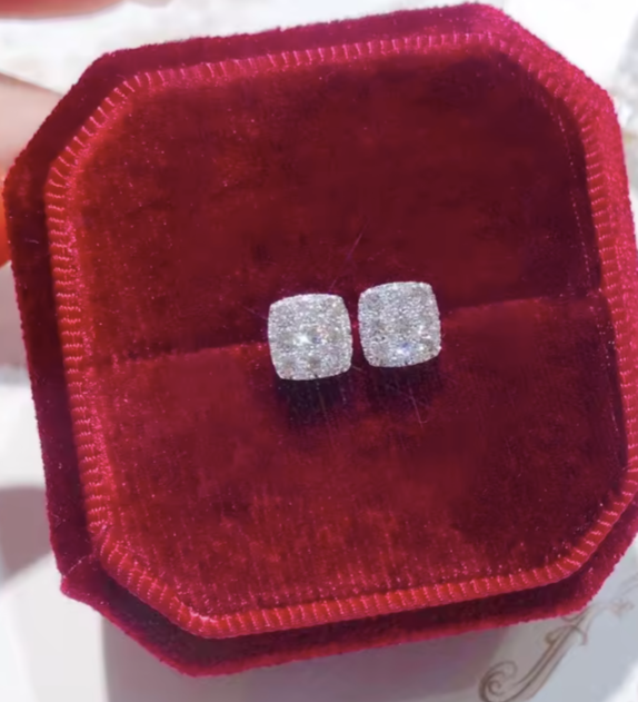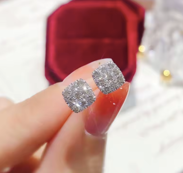These square-cut stud earrings are encrusted with glimmering CZ crystals, delivering maximum shine with a minimal footprint. Whether you're stacking them or rocking them solo, these studs hit hard under any light.